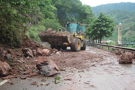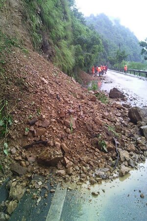 2015年8月18日凌晨6:20,攀枝花市米易公路养护管理段防汛值班室接到垭口养护站巡查电话:“由于连降大雨,省道214线K63+500、K65+900、K66+800三处有大量冲积物或边坡坍方,造成三处道路中断,人员、车辆滞留。”米易段防汛办接到险情后立即启动防汛抢险应急预案,组织人员、机械赶赴现场,有序开展抢险保通工作。经过全体抢险人员奋力抢险,于早上8:05 分K63+500处恢复单边通行,8:30分左右K65+900、K66+800相继恢复单边通行。由于路面上的堆积物、坍方共计有约有400余立方米,加上沿线的零星坍方,全部冲积物、坍方清理完毕预计需要三天。