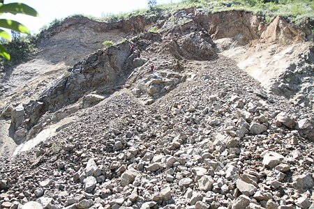 2015年9月18日清晨5时许,总段管养的渡金线青龙山至金江方向约600米处(K5+150米)发生约1万立方米的山体塌方,造成公路交通中断。总段接到险情报告后,逐级上报应急措施的同时立即启动防洪抢险应急预案,组织机械、人员连续奋战15小时,于当日晚20时抢通一条车道。但考虑到山体情况复杂,存在再次垮塌的可能,总段并未开放交通。