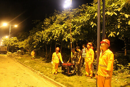 2015年9月21日上午9时,市交通运输局调来消防四中队消防车,对滑坡体实施不间断冲刷,改变滑坡体内部应力,加快下滑速度。总段亦于当日晚21时,从金沙江铺设约200米水带(扬程100余米)至山体顶端,连夜实施不间断浇淋。