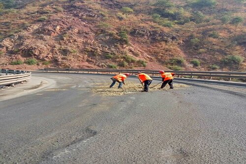 目前,各单位已基本完成对路面坑凼的修补工作,共修补坑凼约6500平方米,其中冷拌料修补坑凼约2000平方米,S214线K66+915-K73+300大修路段,用砂砾石修补路面约4500平方米,确保管养路段内无影响行车安全的路面坑凼。并在春运前全力进行路容路貌的整治工作,整治期间总段共出动人员约900人/次、车辆约124台/次,清扫路面、桥面、隧道约270万平方米,疏通水沟约117公里,清洗波形护栏、桥梁栏杆约3.5万米,清理路面抛洒、白色垃圾、路面飞石约20吨,维护道路绿化25万平方米。