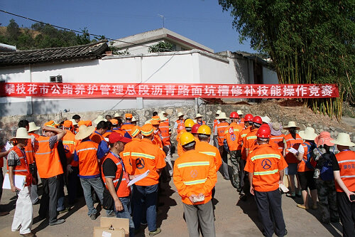 攀枝花市公路养护管理总段竞赛活动组委会科学组织、精心安排此次竞赛活动,将此次竞赛共分为安全保障组、裁判组、仲裁组、宣传后勤保障组、参赛组共计5个大组。其中参赛人员分为每组3人共计10个小组进行分批竞赛。为达到共同进步、提升工作能力的目的,组委会还组织了数十名职工到现场观摩、学习。