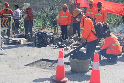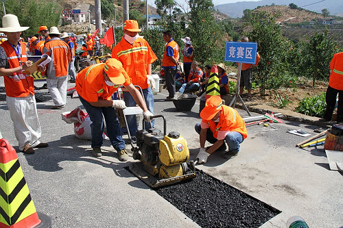 2016年5月6日上午9时,总段在省道214线K145至K146路段(大田洛布旧桥附近路段)组织近百人开展了“沥青路面坑槽修补技能操作”竞赛活动。