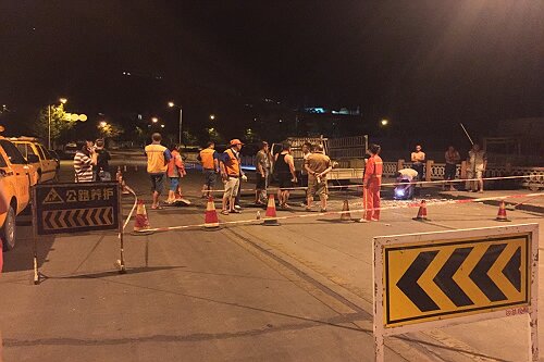 6月1日19时许,因炳清线铸钢厂桥面突然出现裂痕,市公路养护管理总段及时组织抢险人员到现场处置,设置了安全警示标志标牌,对半幅桥面进行临时封闭施工。