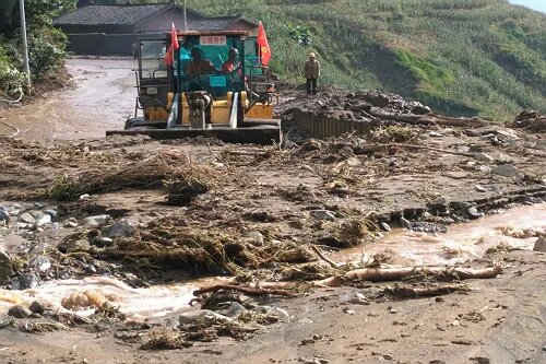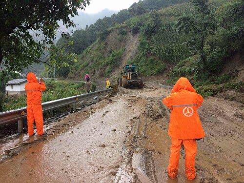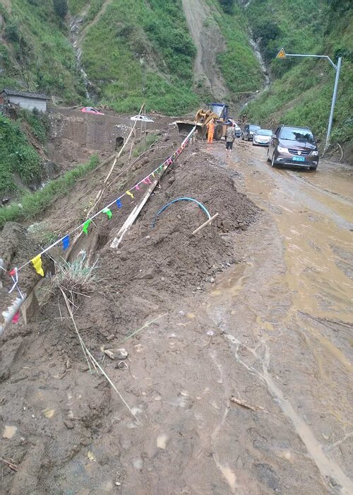 9月18日,受近日持续降雨影响,省道216线k683+250、k682+760--k682+800、K682+840--k683+50、k682+600--k682+760(小地名:马达菁段)发生大面积泥石流,超过3000立方米的土石涌入公路路面,造成公路交通中断。河门口段接到险情报告后立即启动防洪抢险应急预案,组织多台机械设备和20余名抢险工作人员积极开展抢险保通工作。抢险工作于当日8点20分开始, k683+250处于9点30分抢通,其他断道点抢通工作有序推进。截至17点50分,所有断道点抢通半幅公路并有序放行两端车辆。由于该路段地处山区,公路弯急、坡陡、视线差,不适宜继续抢险施工,在设置好安全警示标志后,所有抢险人员和机械撤离现场,第二天继续对剩余塌方、泥石流实施清除工作。