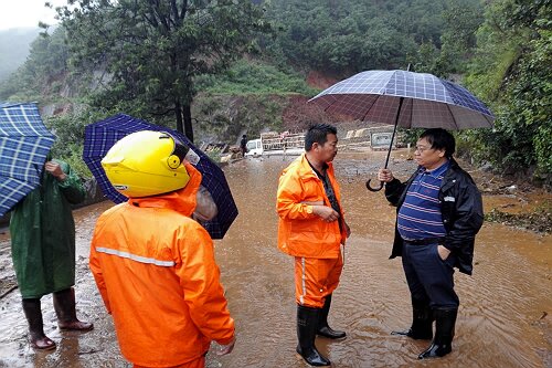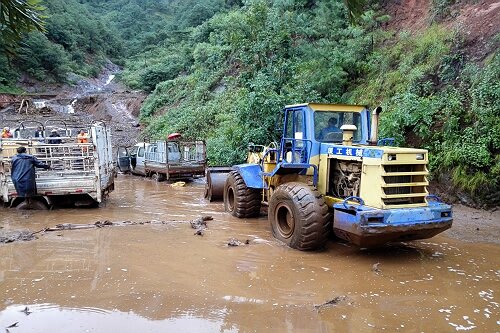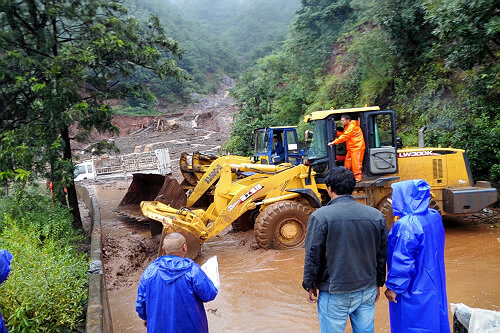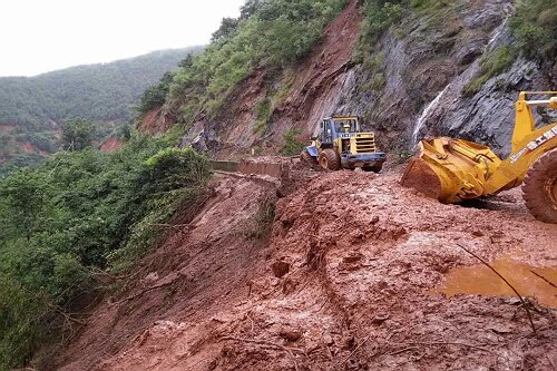 19日,在受灾最为严重的省道214线总发至平地段[主要为K152+000—K158+400段(银鹿村—回蚌村)],大大小小塌方、泥石流几十处,多处路基冲毁,造成多处道路中断,总段职工从上午7:00—19:30持续奋战了近13个小时,在抢险现场简单应付午饭后,继续冒雨开展抢险工作,并帮助被困的2两货车脱困。截至19日晚,已从回蚌村抢至三道湾处,由于抢险路段山体陡峭且不稳定,加上持续降雨和晚上视线影响,在设置好标识标牌后抢险人员和机械设备撤出现场,待视线条件允许后继续施工作业。