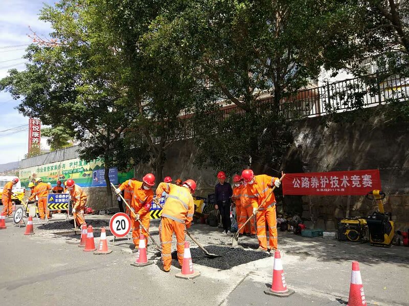 为了全面贯彻攀枝花市公路养护管理总段“养护质量年”活动要求,进一步提高公路养护队伍的整体素质、强化全员养护质量意识、规范养护操作规程、提升行业形象,攀枝花市米易公路养护管理段于 2017年3月16日下午14:00在辖区道路省道214线K31+500—540段进行了公路养护技能竞赛。竞赛分三组、每组四人,抽签划分赛区,现场操作、点评、打分和排名,竞赛内容为采用冷补料对路面坑槽进行修补。经过激烈角逐,垭口养护站四名选手凭借过硬的技能本领以90.6分得成绩取得第一名。此次竞赛为一线职工提供了一个相互学习交流养护技能经验的平台,职工技能水平得到了提升,有力促进了米易段公路养护科学化、机械化、规范化建设工作迈上新台阶。
