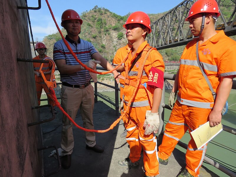 为进一步落实“总段养护质量年活动”和安康杯劳动竞赛要求,以强化安全管理基础,提升职工安全素质为目的,5月2日,市桥梁检测中心组织职工在老雅江桥的塔吊检查作业现场进行了专项安全培训。现场主要对老雅江桥塔吊上爬检查作业中使用的双钩安全带的重要性和使用方法进行了详细讲解和示范,并对桥隧的高空检查上爬作业时必须佩带双钩安全带作出了严格要求。