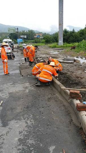 清理炳清线排水沟,检查修复水沟板。 对红雅线长平尖角地带进行路裸土覆