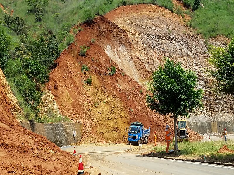 9月13日9:00许,疑受近期降雨天气影响,平地镇拉鲊境内国道108线K3024+000路段发生约1600立方米山体坍方,造成短时交通中断。接到险情后,大渡口公路养护管理段立即启动防洪抢险应急预案,组织平地养护中心职工、机械设备第一时间赶赴现场,设置警示标志标牌,维持交通秩序,及时开展道路抢险施工工作。总段领导带领相关科室人员现场指导抢险工作。