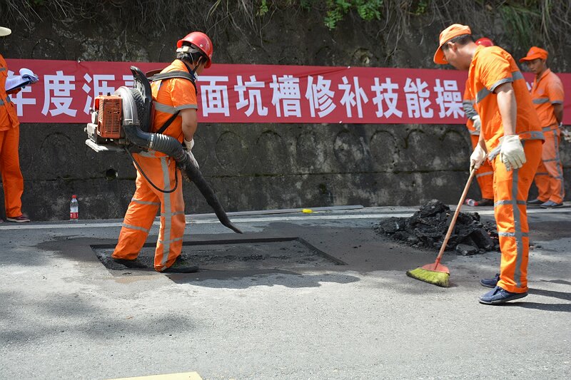 培训活动于当日9:00开始,实验室相关人员首先就9月12日技能竞赛活动中参赛选手在操作过程中存在的问题进行了分析、讲解;在现场实际维修操作中,参训人员认真观摩、学习,并轮流参与实际操作体验,计划养护科相关人员对坑槽修补操作的每一个流程和步骤都进行了讲解,对错误和不符合规范的细节进行了纠正。