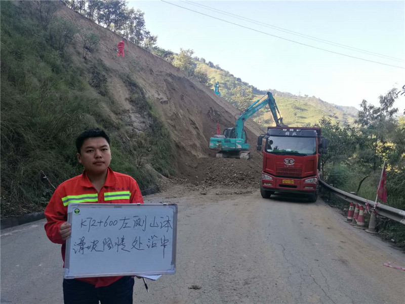 2017年10月19日,市公路养护管理总段职工路巡发现省道214线K72+600处(米易湾滩电站往米易方向约1公里)往攀枝花方向左侧边坡上方有一道长约60米、宽约0.01米的裂缝,并不时有泥土碎石下滑,为确保下方过往车辆和行人安全,总段职工立即在现场设置安全警示标志并及时将险情上报相关部门,同时设置观察点,安排专人持续观察现场。