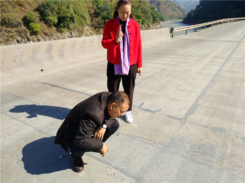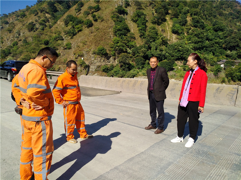 11月13日上午,总段领导蒋聂带领计划养护科、安全保卫科、办公室等科室相关人员到省道214线督查方田桥至湾滩段公路大修工程施工工地,现场了解施工作业情况,要求施工单位严谨组织,强化管理,严控施工质量,加快施工进度,确保按期保质安全完成施工任务。随后一行还查看了对箐沟桥无缝伸缩缝试验效果,并与一线职工亲切交谈。