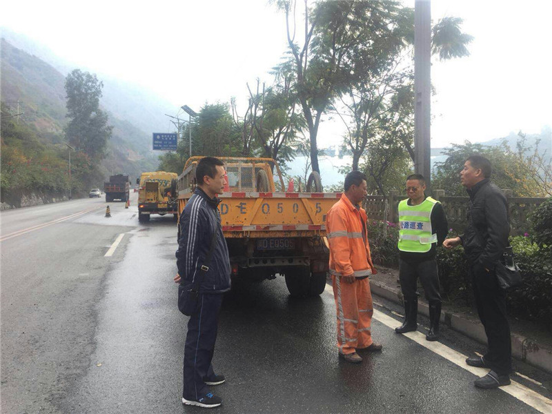 近日,为保障第三届康养论坛会在攀枝花顺利召开,总段领导深入公路养护一线实地查看康养论坛会主线路红雅公路保通保畅保洁工作开展、落实情况,要求金江段干部职工高度重视,提高认识,切实做到人员管理到位、资金保障到位、工作落实到位、形象树立到位,了解并想办法切实解决养护工作中存在的困难和问题,结合实际情况及时调整策略措施,确保此次康养论坛会公路保畅保洁工作的顺利完成。针对红雅线(巴拉河桥附近)灌溉沟堵塞漫水至路面的情况,总段领导还亲临现场汇同相关人员制定处治措施,及时消除隐患。