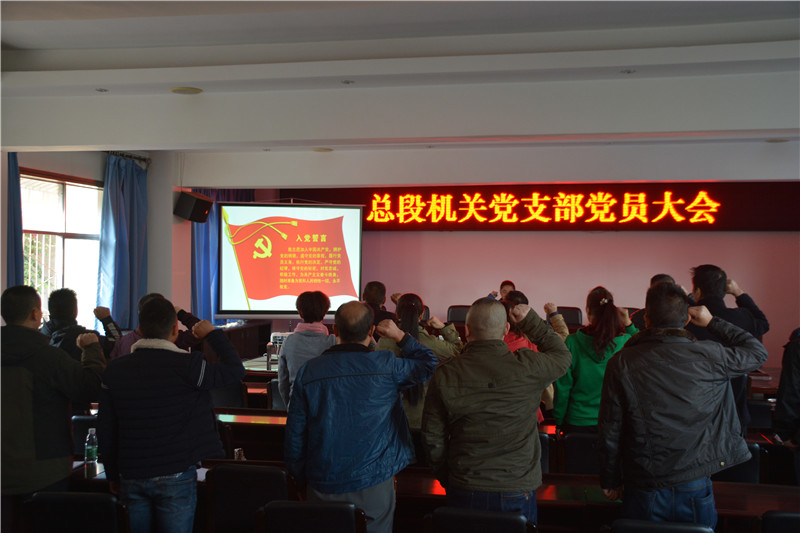 2017年12月28日下午,总段机关党支部组织召开党员大会,开展重温入党誓词主题党日活动。与会全体党员首先收看了中国共产党坚持反腐倡廉、从严治党视频学习资料,随后在党支部书记莫邦荣的带领下,全体党员起立面对党旗重温了庄严神圣的入党誓词。大会还讨论研究吸收黄光碧同志为中共预备党员事宜,经全体党员投票和支部委员会研究,决定吸收黄光碧同志为中共预备党员。
