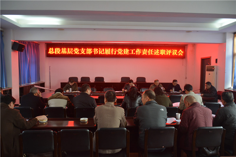2018年1月19日上午9:00,总段召开基层党支部书记履行党建工作责任述职评议会,总段党委领导班子成员、机关及下属各单位党政负责人参加会议。