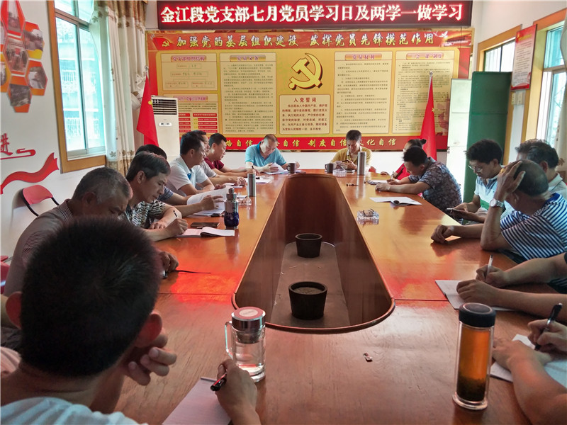 2018年7月6日下午,金江段党支部组织在职党员、退休党员代表在段部会议室召开了七月党员学习日及两学习一做学习会。