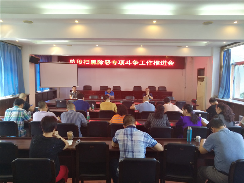 2018年9月17 日下午16:30,总段召开扫黑除恶专项斗争工作推进会,总段扫黑除恶专项斗争领导小组成员及相关人员计25人参加会议。会议传达了9月17日下午市交通运输局扫黑除恶工作会议精神,安排部署总段下一步工作。