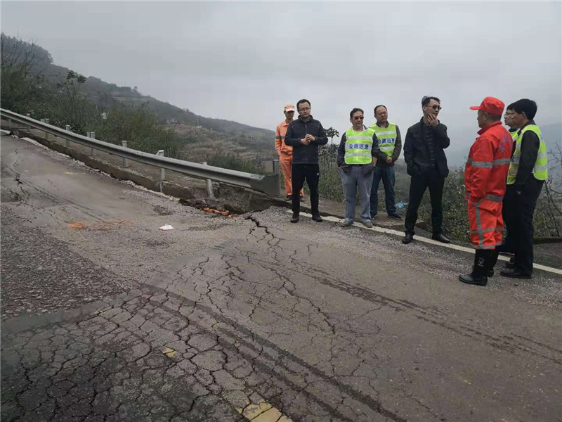 刘彦锋首先听取了河门口段对地质灾害路段临时处置情况的汇报,询问河门口段养护站一线职工(专人负责)观察点数据变化情况,并仔细查看了地质灾害路段病害现场。刘彦锋对总段前期开展的病害临时处置工作给予了肯定,根据现场情况和下一步工作,刘彦锋提出四点要求:一是加强三处地质灾害路段的巡查、监控,做好原始记录。二是进一步完善安全警示标志。三是立即采取临时处置措施,做好公路保通工作。四是一旦出现紧急情况,立即采取有效安全防范措施,并及时报告主管部门。