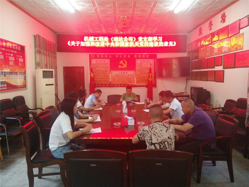 4月24日,机械工程处(瑞达公司)党支部组织党员学习了《关于加强和改革中央和国家机关党的建设的意见》。学习要求党支部和党员要深入学习贯彻习近平新时代中国特色社会主义思想和党的十九大精神,认真落实新时代党的建设总要求和党的组织路线,带头坚决做到“两个维护”,带头坚决贯彻落实党中央各项决策部署,充分发挥战斗堡垒作用和先锋模范作用,为推动单位持续健康和谐发展提供坚强保证。