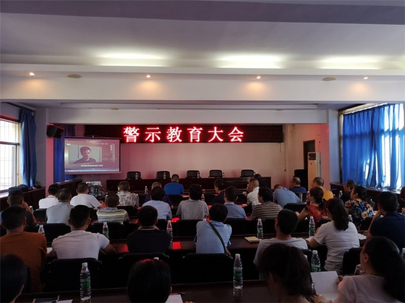 会议通过警示教育片中一个个鲜活、深刻、典型的党风廉政案例,以案说理,以案示警,教育党员干部职工须“不忘初心、牢记使命”;通过身边人、身边事再一次警示党员干部职工以案例为镜而知敬畏、正衣冠、守信仰、弘正气。