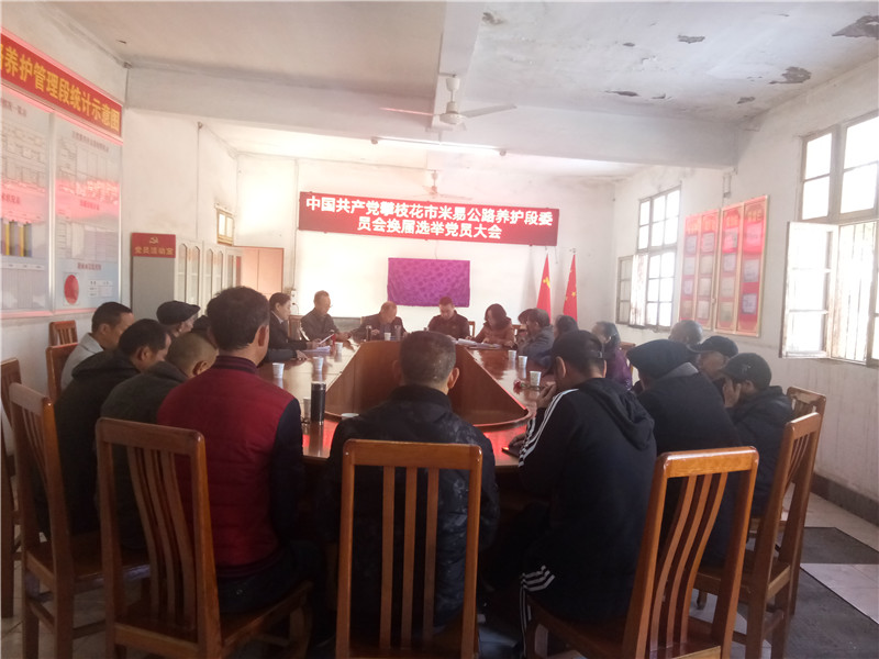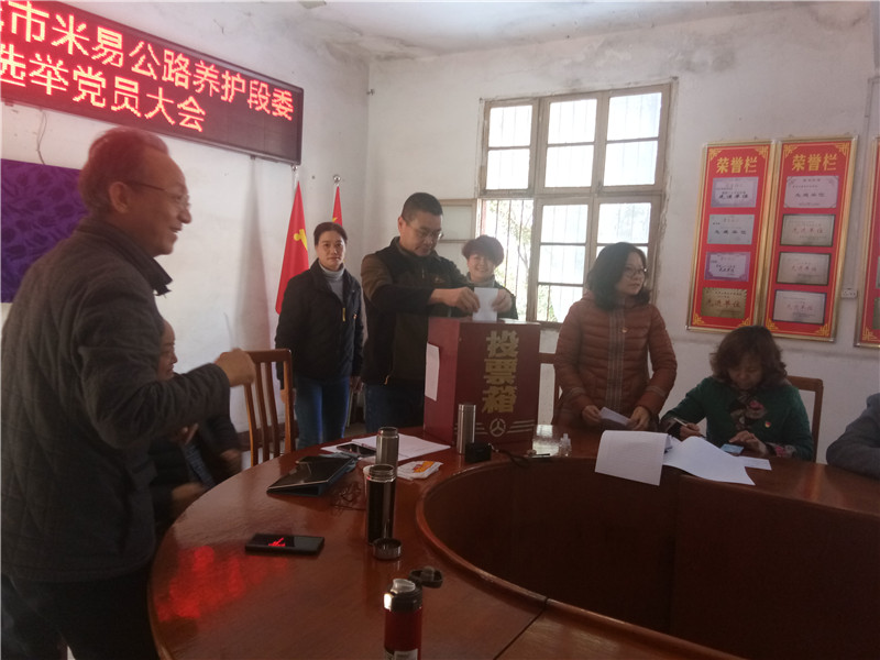 根据总段党委《关于同意基层党支部换届选举新一届党支部委员候选人的批复》(攀养委〔2019〕33号)文件精神,遵循党章规定,1月10日上午,米易公路养护段党支部召开换届选举党员大会。经到会24名党员充分酝酿讨论,采取无记名投票方式和差额选举办法,选举出陈健、杨妙全、杨碧三名同志为新一届支部委员会委员。当日下午召开了新一届支部委员会委员第一次全体会议,经无记名投票方式选举出陈健为支部书记。会上还学习了习近平总书记在“不忘初心、牢记使命”主题教育总结大会上的讲话及《深入解读四川省委十一届六次全会精神》。