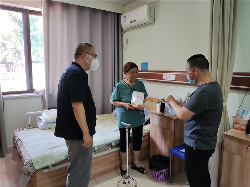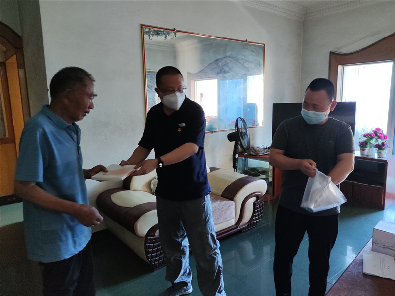 金江段支部积极开展“服务三五家普通群众带动十几人爱党报国”活动,8月19日为支部行动不便的退休党员送学上门。