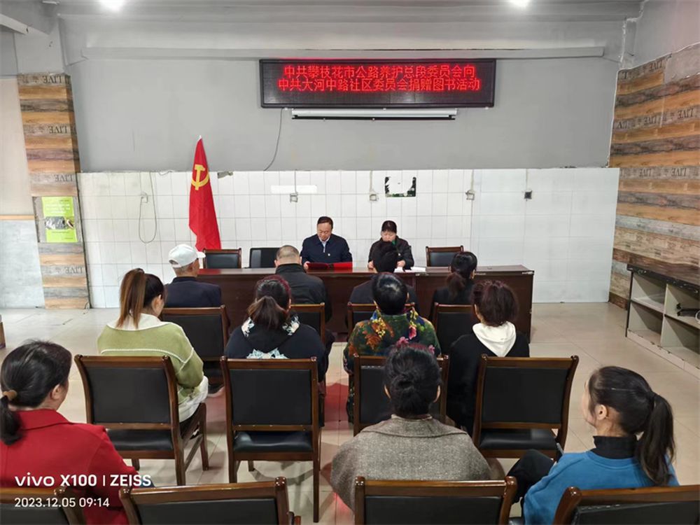 活动中,总段党委副书记叶正权代表总段党委向大河中路社区捐赠了党建学习书籍,捐赠了包括《社会主义发展简史》《中华人民共和国简史》《中国共产党章程》《习近平著作选读》《习近平谈治国理政第三卷》《习近平新时代中国特色社会主义思想专题摘编》等11种学习资料,共计102本。