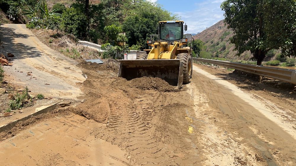 6月11日6时35分,小街养护站值班人员在进行道路巡查时,发现S465线K29+100—300路段发生泥石流约800余立方米,交通阻断。由于现场一直大雨,路面水流过大,不具备抢险条件,值班人员立即设置交通中断警示标志,进行交通管制。米易段在接到险情后,及时反应,立即启动应急预案,组织人员、车辆、机械设备赶赴现场。经过现场工作人员共同努力下,道路于8时30分恢复半幅通行,12时30分,全面恢复通行。本次抢险共出动人员15余人,挖机1台,装载机2台,车辆2台。