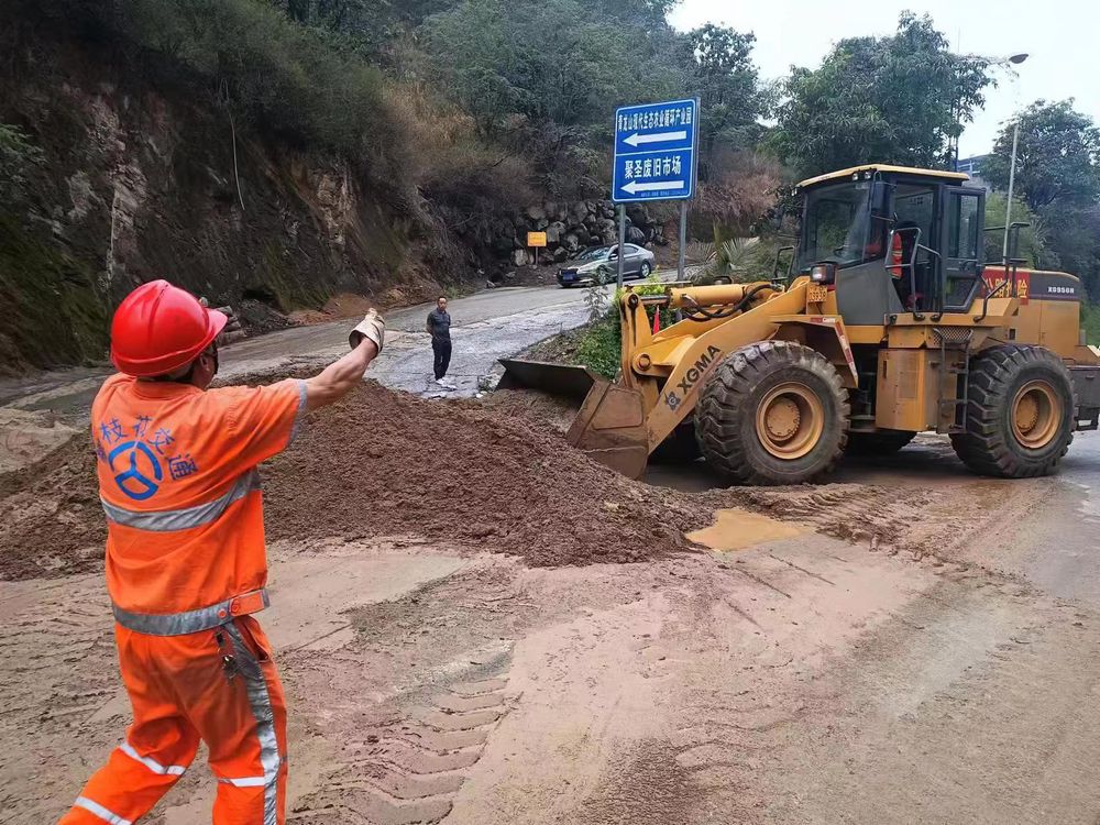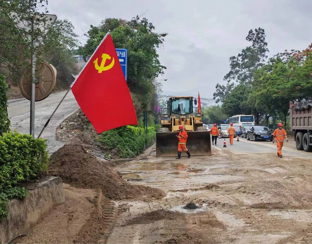 6月12日凌晨2:40许,国道227线K2573+000—120(湾滩段)路段发生约2200立方米泥石流、坍方,飞石约1000余平方米,造成交通临时阻断。接到险情后,总段立即组织数名公路巡查人员于3:30许赶到灾害现场,在对现场灾情进行了紧急踏勘和评估后,巡查人员耐心劝返了滞留现场车辆,4:00许完成阻断道路两端绕行提示牌的设置,为确保人员安全,巡查人员撤离现场。在稍作休息和准备后,6:30许,天刚微亮,一支由共产党员带领的20余名抢险人员、1台装载机、2台抢险车辆组成的“党员突击队”抢险保通队伍赶赴现场,有序开展泥石流清除工作,经过近2小时的紧张作业,全部清除路面泥石流,恢复了正常交通通行。