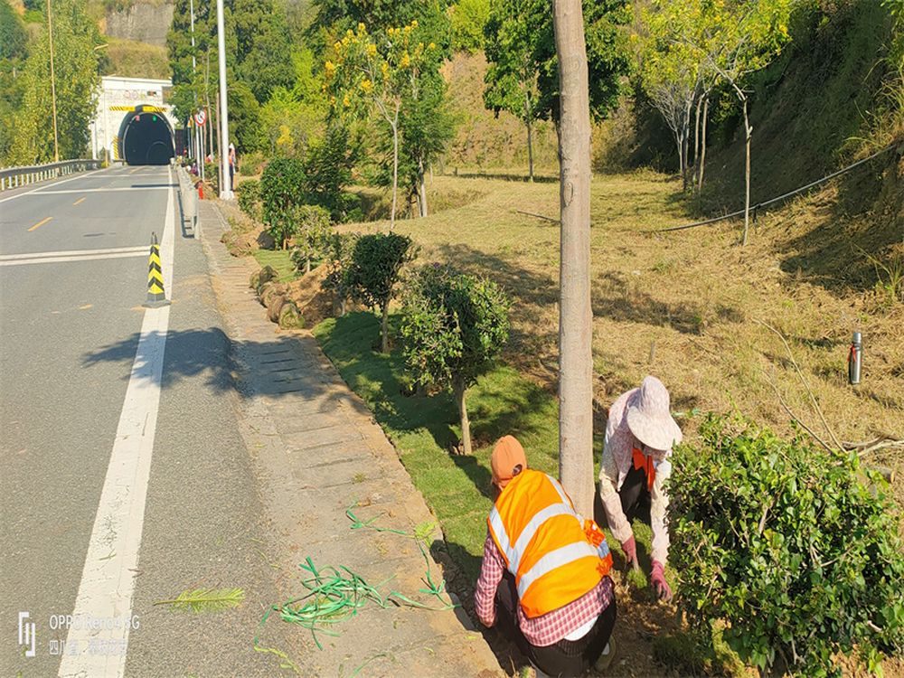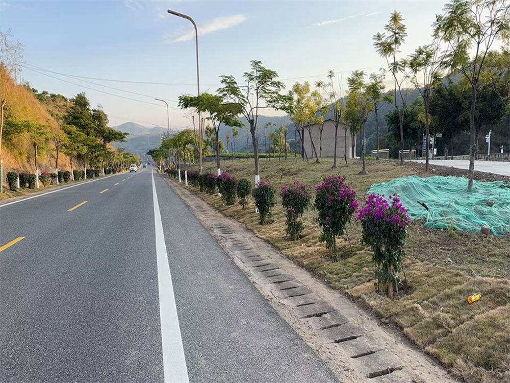 二、路域绿化提档升级。积极开展绿化补植、修剪和养护工作,重点对机场路、鱼塘连接线开展大规模绿化补植修整工作,累计补植凤凰树、三角梅等乔灌木1000余株,铺设、修剪草坪及灌木4700余平方米,并对1140余棵行道树进行了除虫和刷白养护,使得公路沿线绿化景观更加整洁、美观。