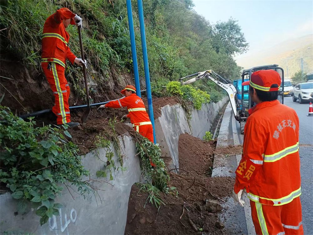 三、路域环境整洁安全。全面清理沿线坍方、堆积物约2700立方米,边坡清危处置2处(清理土石方800立方米),疏通水沟近10万米,修整路肩5万平方米,清理涵洞120道。同时,加强安防设施维护,更换维修波形护栏、中央隔离栏,校正安装警示柱,更新标志标牌,有效提升了道路安全通行能力。