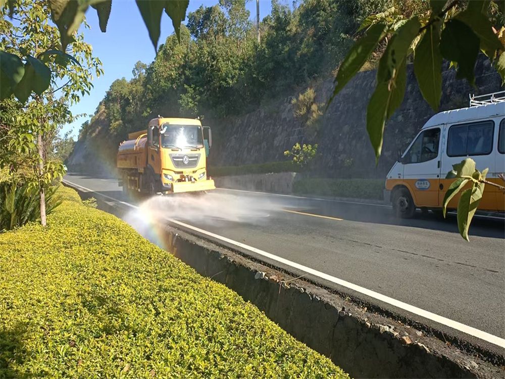 四、保洁清洗全面覆盖。采用“人工+机械”相结合的方式,完成了180余万平方米路面的清扫和19余万平方米的深度冲洗,完成约8000米波形护栏、7000米隧道洞身、栏杆及4900余块各类标志标牌的擦洗保洁,确保了沿线设施的干净整洁。