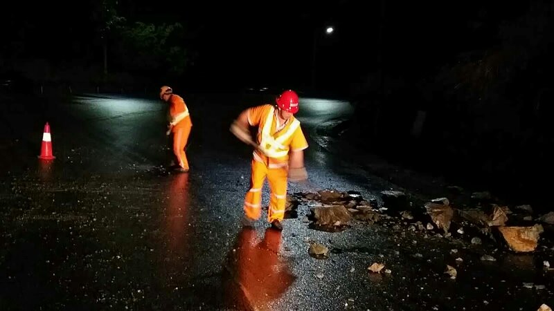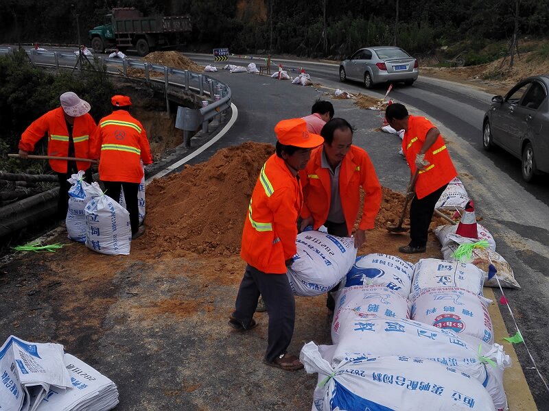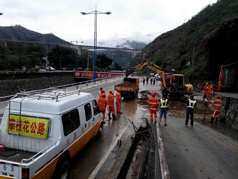 险情发生后,总段立即启动防汛抢险应急预案,及时组织装载机、挖掘机、运输车辆等机械设备和人员迅速开展抢险保通工作,由于连续降雨,公路上新的险情不断出现,为了给广大市民和司机朋友提供安全、通畅的交通通行环境,总段职工发扬攀枝花公路人艰苦奋斗、连续作战的优良传统,放弃本该休息的周末时间,持续奋战在公路抢险第一线,截至7月2日17:00时,总段投入应急抢险人员911人次,运输车辆72辆,装载机33台次,挖掘机7台,水车4台,拖车1台,抢通阻断公路4处,清理各类公路坍方7489.18立方米,冲洗泥浆污染路面约36000平方米,对三处路基缺口采取堆码沙袋隔离水系,设置提示标志标牌等应急保通措施。