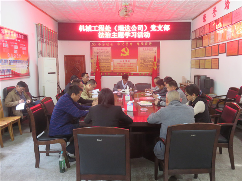 2019年3月7日,机械工程处(瑞达公司)党支部组织党员开展法治主题学习活动,重点学习了《习近平谈治国理政》第二卷——领导干部要做尊法学法守法用法的模范和〈中共攀枝花市委组织部等部门联合印发《关于对特殊主体失信被执行人实施联合惩戒的规定(试行)》的通知〉、〈中共攀枝花市委办公室关于印发《攀枝花市党委(党组)、领导干部日常监管“红黄牌”预警处置办法(试行)》的通知〉。学习活动要求党员要做尊法学法守法用法的模范,尊崇法治、敬畏法律、掌握法律、捍卫法治,牢记法律法规和规矩纪律的红线不可逾越、底线不可触碰,带头厉行法治、遵纪守法、依法办事。